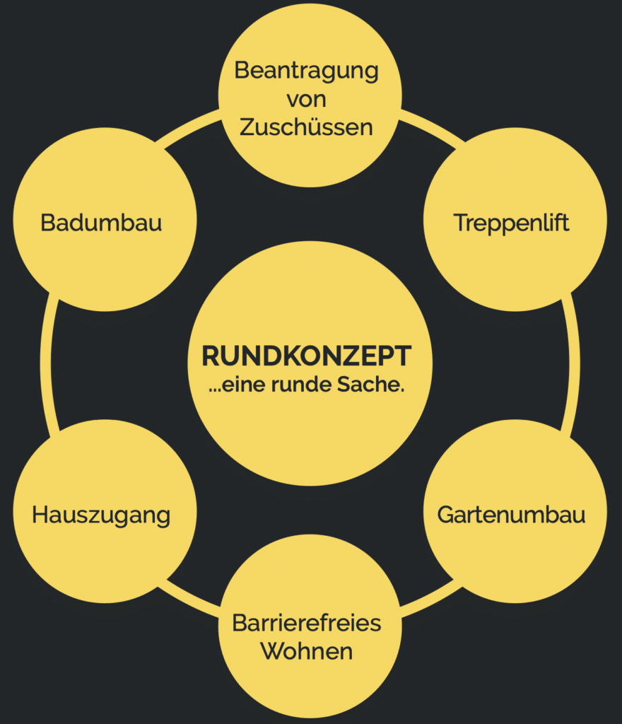 Die Idee hinter Rundkonzept – „Alles aus einer Hand“ für den barrierefreien Umbau anzubieten, traf den Nerv der Zeit. Unser Anspruch ist es, Menschen wieder zu mehr Lebensqualität in ihren eigenen vier Wänden zu verhelfen.